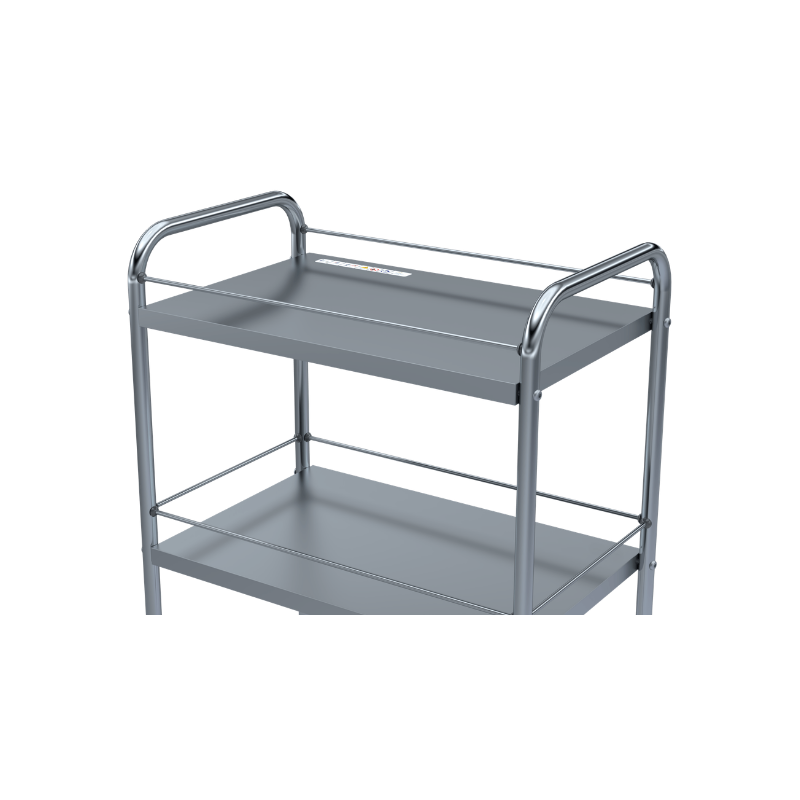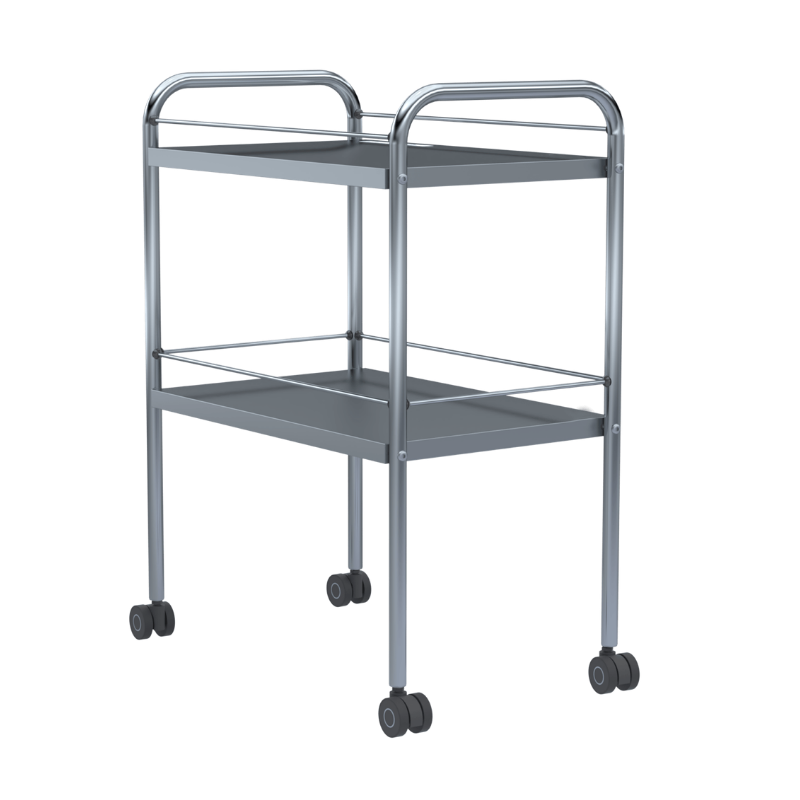 Auxiliary table in stainless-steel, 2 shelves suitable for preparing, transporting and classifying medical material with safety railings, TENTE® wheels in polyurethane.